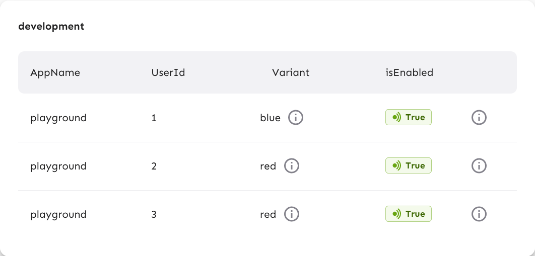Each feature flag will contain info on whether it was enabled or not and which variant it was assigned. Later versions of the playground also contain detailed evaluation results to help you understand exactly why the feature was enabled or disabled.